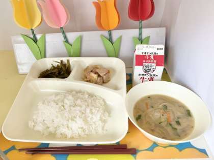 【ごはん、牛乳、まぐろの甘辛焼き、豚汁、