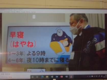 昨日2月6日(月)の児童朝会「ビデオ朝会」の