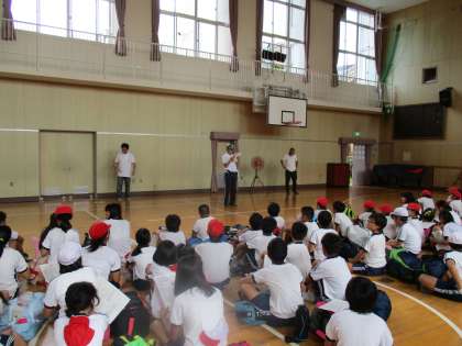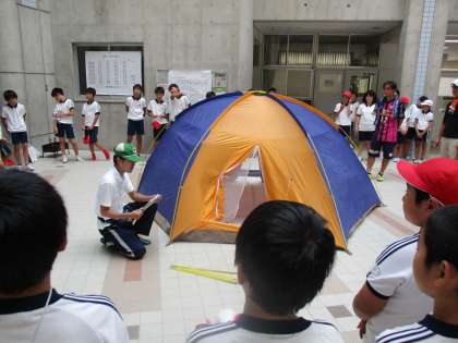 8月22日23日は、5・6年生が楽しみにしている校庭キャンプです。地域の青少年指導員の方、PTAの方、先生方に手伝ってもらいながら、テント設営や飯盒炊飯などを行いました。小グループになって、みんなで力を合わせながら協力して楽しんでいます。今晩は、しっかりと眠れるかな?