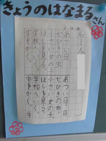 今日の1年生シリーズ(NO.101)「きょうのはなまるさん」