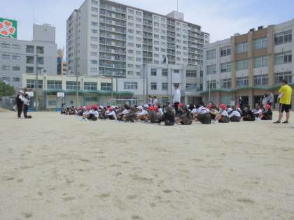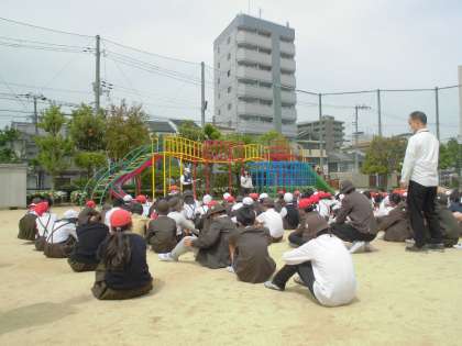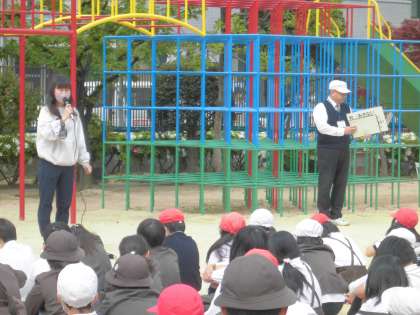 避難後、避難訓練担当と学校長の講話を聞きました。