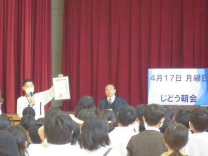毎週月曜日の朝は、「児童朝会」を実施します。