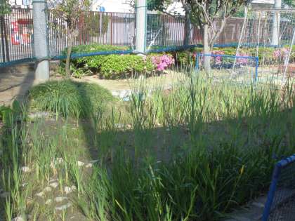 運動場の南西角にある本校のビオトープ「ユートピア池」