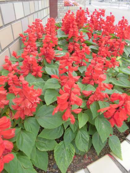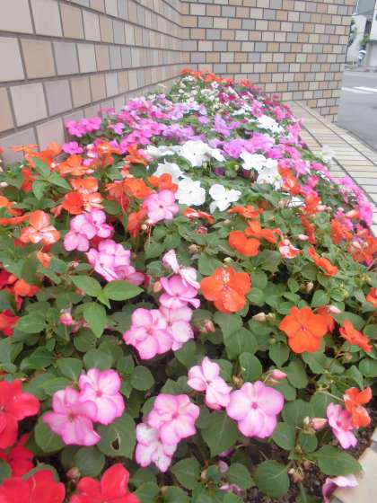 「インパチェンス」と「サルビア」が咲き誇っています。