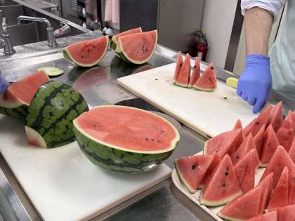 今日の給食には、すいかが登場しました。