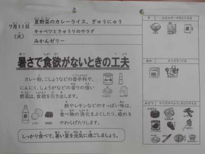 明日7月11日(火)は、「夏野菜のカレーライス」が、