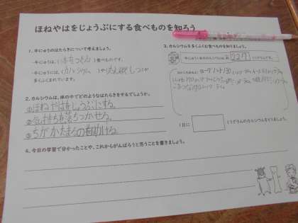 主題は、「歯や骨を丈夫にする食べ物を知ろう」でした。