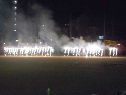 「PTA紙飛行機競争」に引き続いて、運動場で