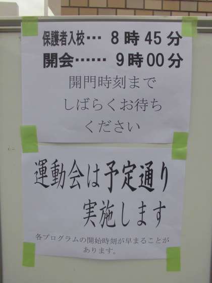 本日10月8日(日)の「運動会」は、予定通り【開催】