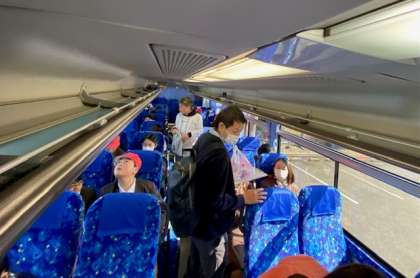 子どもちを乗せた観光バスは、