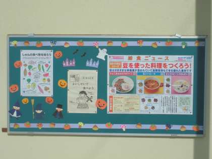 学校給食調理室前の掲示板を、