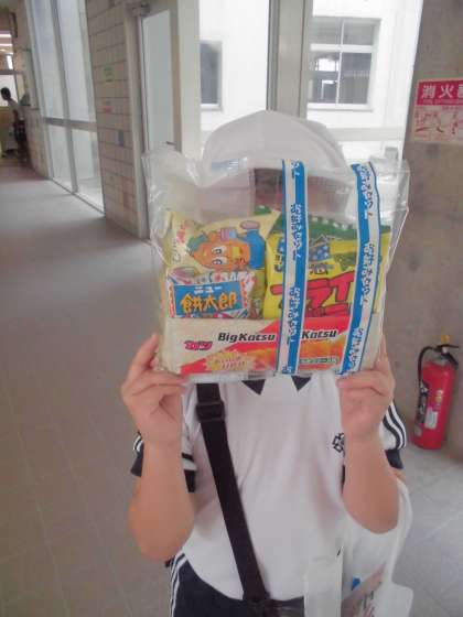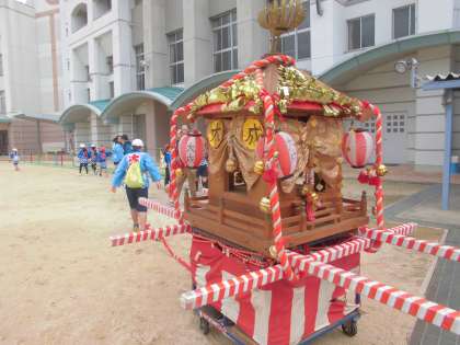 それぞれ町内を巡行して、学校に戻ると(写真中)