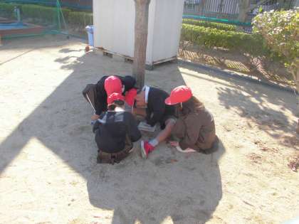 休み時間、いつものように、運動場を探検していますと…