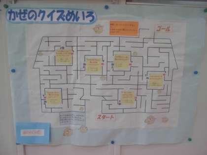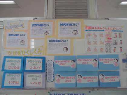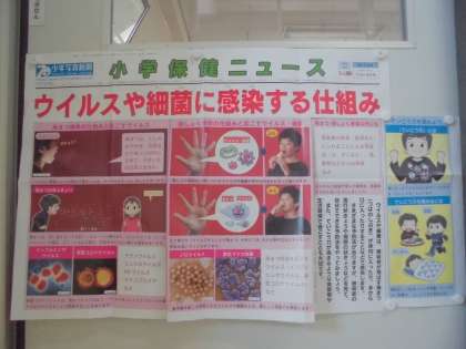 風邪を引くしくみ(保健室前の廊下の掲示板より)