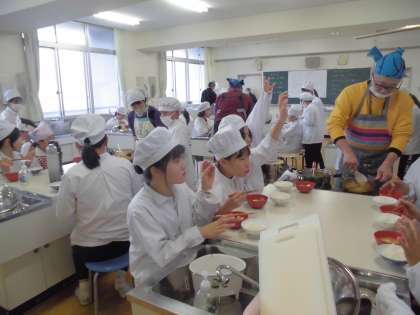 5年生は、家庭科室で、家庭科の学習活動
