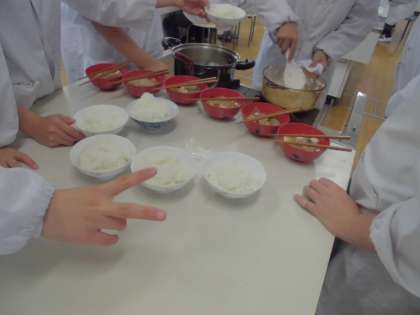 【ご飯と味噌汁】の調理実習をしました。