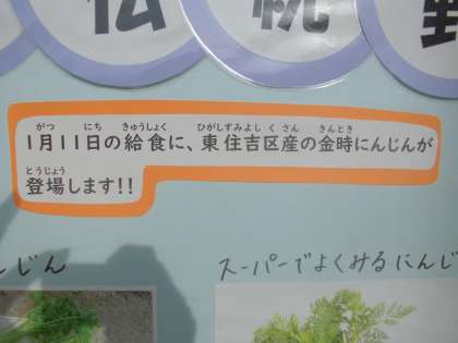 なにわの伝統野菜 東成区の「金時にんじん」が出ます。
