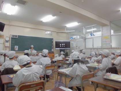 学校給食の時間に、給食委員会の子どもたちが