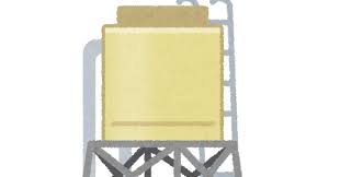 学校では、一旦、揚水ポンプで高架水槽に揚げて