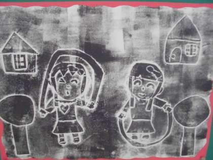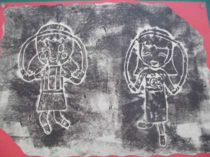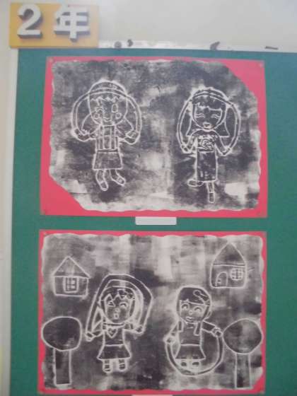 今回は、2年生の図画作品「紙版画」を紹介します。