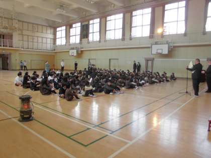 今日3月21日(木)の5時間目、体育館で、