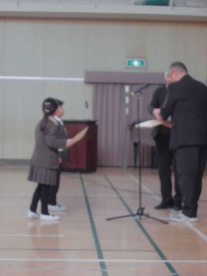代表して1年生が賞状を受け取りました。(写真下)