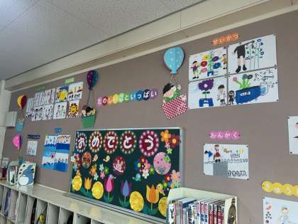 教室の背面には、新2年生からの贈り物の絵が飾られ、とても素敵でした。