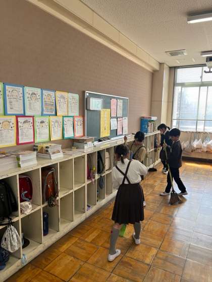 そうじの時間、どのフロアでも、どの学年でも、みんな、丁寧にそうじをしていました。