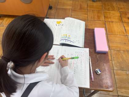 3年生は国語科『すいせんのラッパ』の学習に取り組んでいました。めあては「人ぶつのようすや気もちをそうぞうして音読しよう」です。