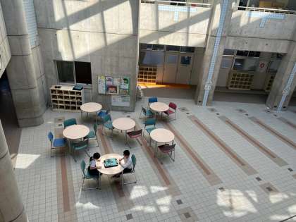 午後の休み時間、ピロティでは、心地よい風が吹く中、4年生のお友達が、とても楽しそうにオセロをしていました。