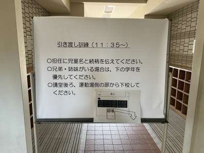 保護者の皆様、本日は土曜参観「大成フェスティバル」及び「引き渡し訓練」のため、ご来校いただき、ありがとうございました。
