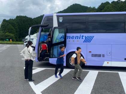 林間学習から戻っている途中の5年生のバスは、道の駅『但馬のまほろば』で休憩をとったのち、13:30ごろ出発しました。
