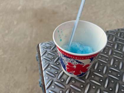 紙飛行機を作ることができた人から、かき氷をいただきました。甘くて、冷たくて、とってもおいしいです。