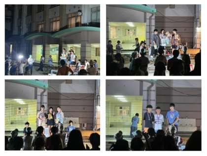 花火のあとには、紙飛行機競争の表彰が行われました。