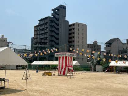 提灯がかかり、ますます、盆踊り、お祭りの雰囲気になってきました。本番が楽しみです!