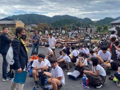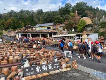 初めの目的地、信楽の宗陶苑(そうとうえん)につきました。日本最大級ののぼり窯をもち、ドラマのロケ地にもなったところです。無数ともいえるほどの狸が出迎えてくれました。