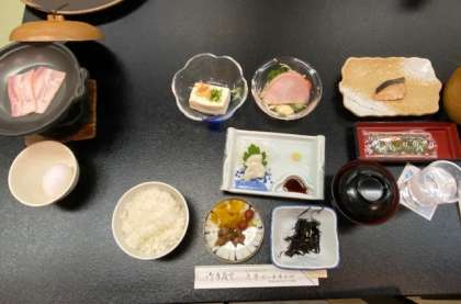 あらめ煮・いかのお造り・鮭塩焼きなど海の幸、地域の特産物がいっぱいです。