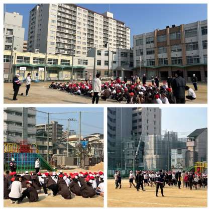 地震発生後、運動場にいったん避難し、津波に備えて、再度、全学年3階以上に避難しました。防災意識を高めておきたいと思います。