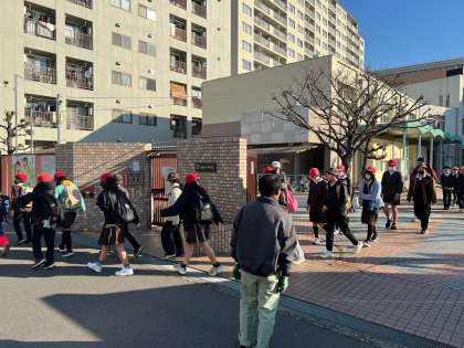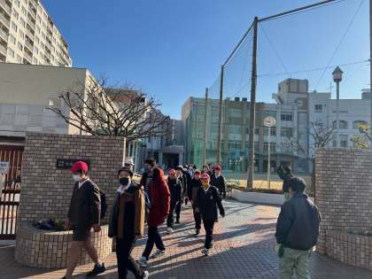 本日、6年生は卒業遠足として、ひらかたパークへ行きます。先週よりは少しだけ寒さもゆるむ中、元気に出発しました。管理作業員さんや養護教諭の先生も温かいまなざしで見送ってくださいました。