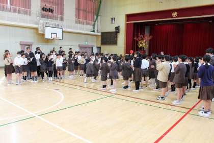 その後、新しい仲間となる新入生との対面式がありました。上級生が花道をつくり、手拍子で迎えました。