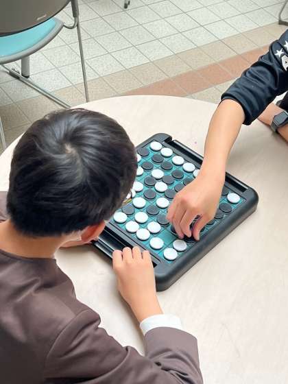 放課後、ピロティを通りかかると、何人かのこども達が、勉強やオセロをしていました。見守ったり、一緒に楽しんだりしてくださる先生方からも温もりを感じます。
