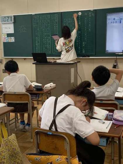 今日は、本文から問いかけているところを見つけ要約することがめあてです。「今日は、たくさん書いてがんばろうね」と先生から。子どもたちは、それに応えるようにして、たくさん書いて頑張っていました。