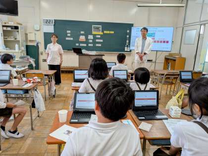 4年生は、フッ化物洗口がありました。校医の文元先生と歯科衛生士の先生にお越しいただき、歯磨きの仕方など丁寧にご指導いただきました。