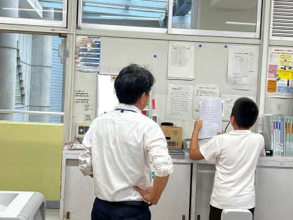 外は雨が降っていますが、元気な声が校舎に響きわたっています!