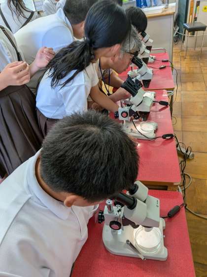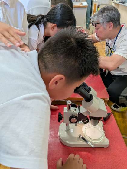 また、子どもたちが、観察しやすいように4つも双眼顕微鏡を準備してくださった先生の配慮にも温かさを感じました。