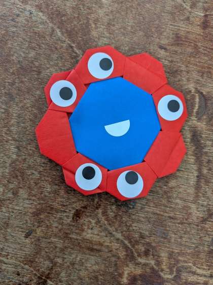 折り紙で、ミャクミャクが作れたことが嬉しかったのでしょうね。