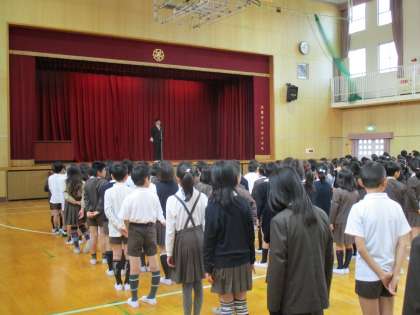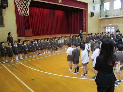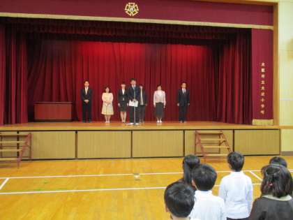 さあ新学期。今年度着任された教職員の紹介の後、始業式です。校長先生のお話を真剣に聞く姿は、みんなのやる気が感じられました。そのあと、1年生との対面式です。元気に入場してくる1年生に思わず手拍子がおこりました。さあ全学年がそろって新学期のスタートです。