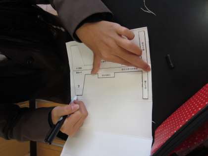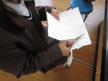 牛乳パックを切り開き、飛行機の型を写し取って、切り取ります。