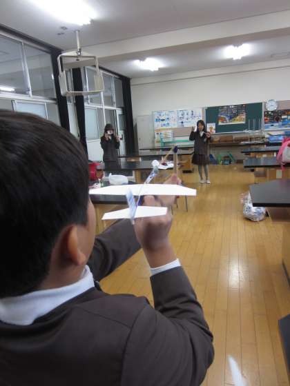 左右のバランス、飛ばす強さ、飛ばす向きでずいぶん飛び方が変わり、みんな楽しんで取り組みました。