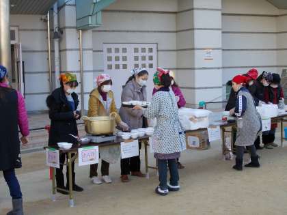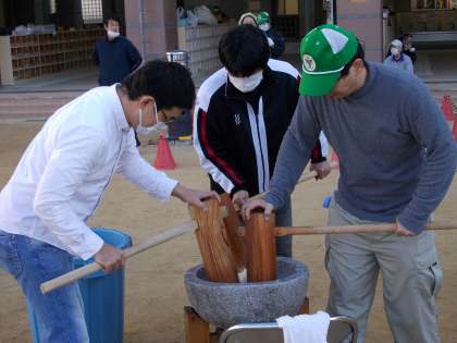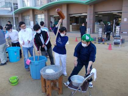ぺったん、ぺったんと校庭に餅をつく音が響いています。